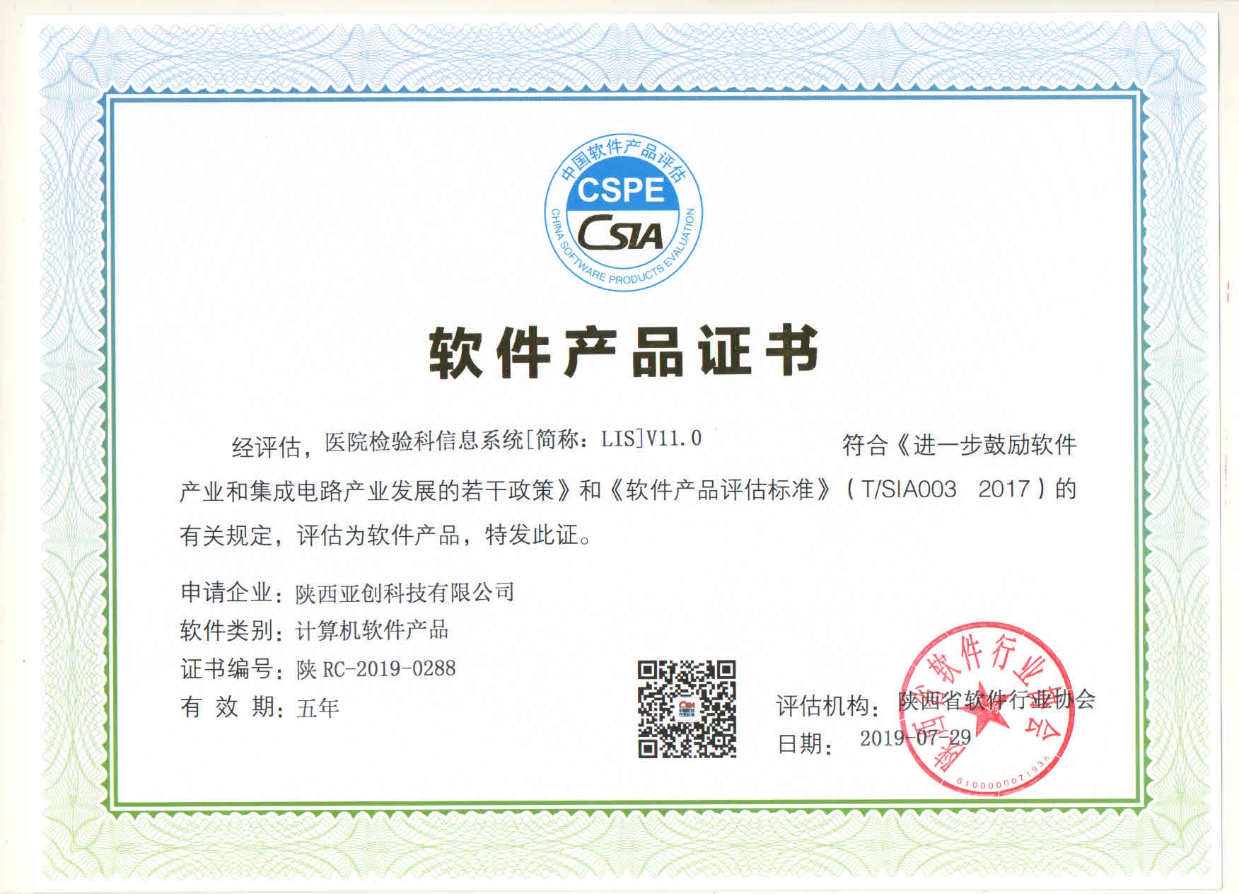 LIS软件产品证书