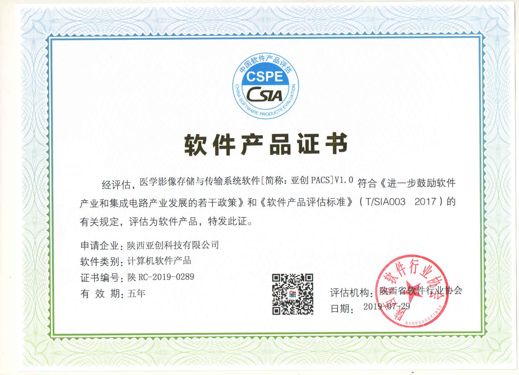 PACS软件产品证书